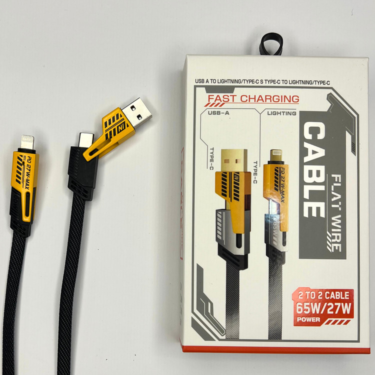 2 in 2 Fast Charging Cable 65W Flat Wire