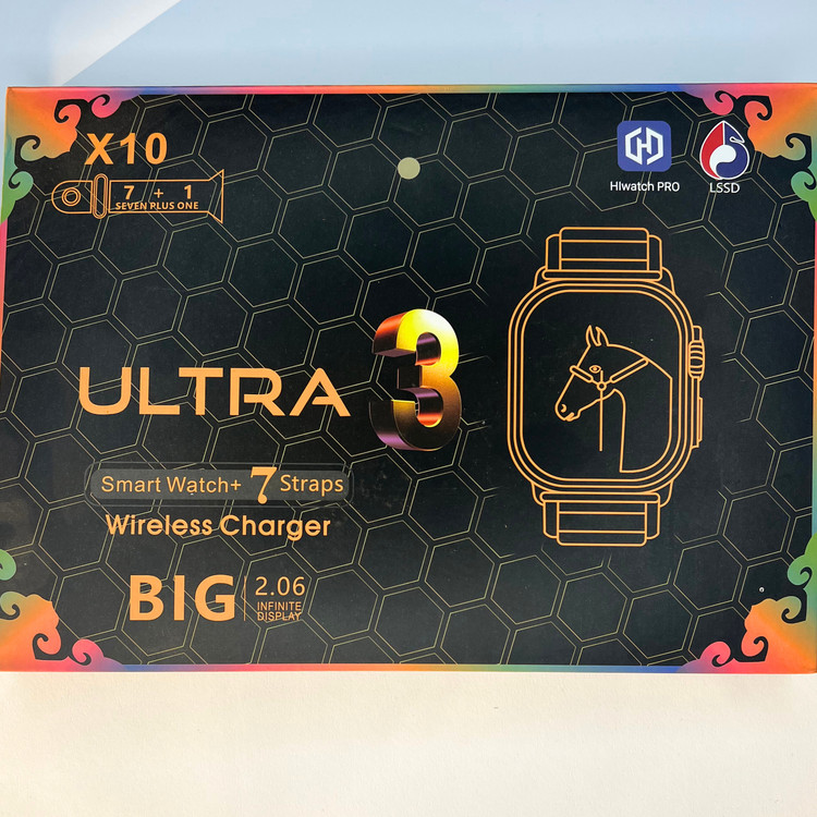 ساعت هوشمند Ultra 3 با صفحهنمایش بزرگ 2.06 اینچ، پک کامل شامل ۷ بند متنوع سیلیکونی و فلزی به همراه شارژر وایرلس. انتخابی شیک، کاربردی و اقتصادی برای استفاده روزمره و اسپرت.